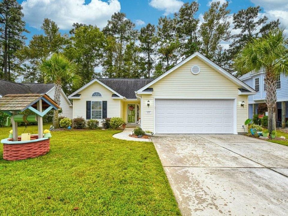 Wonderful opportunity to own a 3-bedroom, 2-bathroom home located in Rivers Reach! Only used as a second home until recently, beautifully landscaped, and well maintained by the original owners. The main living/dining area and kitchen offer vaulted ceilings. The fully equipped kitchen has beautiful wood cabinets, plenty of workspace and a pantry. Choose to enjoy your favorite meals in the dining area or on the back patio on a nice sunny day! The cozy master bedroom has a roomy walk-in closet, a tray ceiling and an ensuite bathroom. Both additional bedrooms are nicely sized and share a full-size bathroom. Step out to the back patio and enjoy a morning coffee or evening cocktails, ideal for BBQs with family and friends! Conveniently located off highway 707 which allows easy access to Hwy 544 and Hwy 17 Bypass S. Just a short drive to shopping, dining, golfing, entertainment, the St James Schools, Food Lion, Target and most importantly the beach! Whether an investment property, a primary home, or a vacation get-a-way, don't miss out!