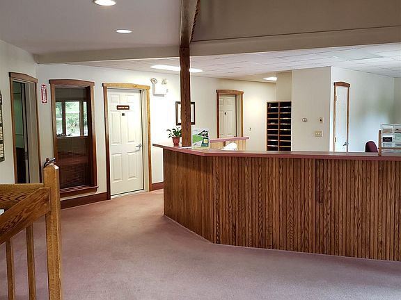 Mountainside Business Center is located 2 miles from the Rt. 16 corridor making it a convenient location whether coming from the Conway, Rochester or Wolfeboro areas. The business center offers quiet offices for professionals to conduct business and meet clients. There are shared common waiting areas, a conference room, bathrooms and a kitchenette. There is plenty of parking. This unit is on the main level with the potential for an office suite as there is an interior adjoining door with Unit 16. Heat, electric & internet are included in your rent. Current tenants include a massage therapist, a logistics company, a professional counselor and a home care service provider.