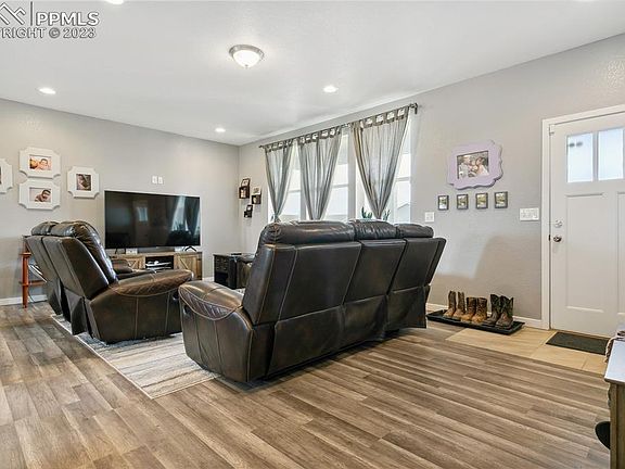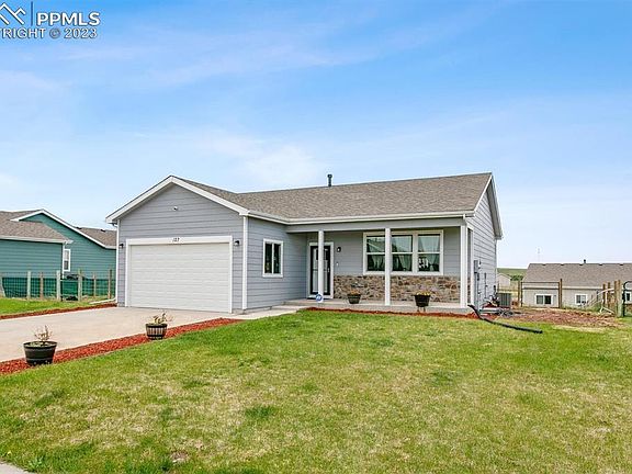 Welcome to Deer Trail, Home of The World's First Rodeo! Enjoy the peace and quiet of small-town living located right off of I-70 which allows for quick access to other corridor towns (Byers, Strasburg, Bennett, Agate) and major cities (Aurora, Denver). This home is conveniently located within walking distance of the towns BRAND NEW school. This 3 bedrooms, 2 bathrooms, 2 car garage, ranch style home features an open floorplan, 9 foot ceilings, and sits on a nearly 1/4 acre lot. Enter from the covered front porch to the spacious living room which opens to the kitchen and dining area. The kitchen features granite countertops, ample soft close cabinets for storage, an island, and stainless steel appliances. Master bedroom with large walk in closet, dual sinks in the 5 piece bath and large fully tiled shower. The 2 secondary bedrooms are nicely sized as well! The Full Unfinished Basement (1500 + square feet) w/ rough-in plumbing is ready to be finished or perfect for added storage! Bring your toys and call for a private showing today.