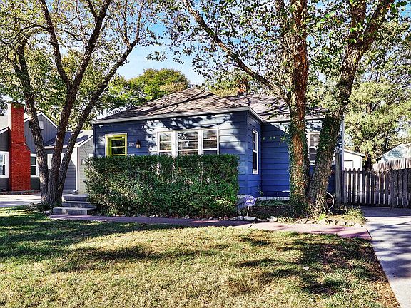 Don't miss your opportunity to own this beautiful Terrace Addition Ranch close to College Hill! Located in the vicinity of Oliver & Douglas, you'll enjoy all of the dining, shopping, and recreational activities available that make this area of Wichita so appealing and in demand! The tree-lined street with homes of various shapes and styles is so different from the newer neighborhoods of homes that all seem to look alike! From the curb, you will love this home's blue paint color with the welcoming yellow door and great landscaping. Step inside to an attractive entryway that opens to the main living area. The open floor plan is tied together with beautiful hardwood floors, neutral paint colors, and attractive decor thru-out! The spacious rooms are filled with light from the extra large and abundant windows in this home! The flow of the home is perfect for entertaining large gatherings of family and friends. The gorgeous brick fireplace with gas logs will warm the area and adds so much character! The kitchen is open from the living room and comes complete with all stainless appliances, handy eating bar, new lighting, subway backsplash, and updated cabinets, sink, and countertops! The main floor features two bedrooms with nice-sized closets and one full bath with tub/shower and updated vanity and lighting! What is unusual for a home of this age is a half-bath off the second bedroom--so convenient for whomever uses this room! There is a full basement with a nice-sized family room/den that features a decorative fireplace! There's also a laundry room with washer/dryer, mechanicals, and plenty of good storage. Buyers will find this to be a very usable space for whatever their needs are! You'll love the fully fenced outside entertaining space with large patio area and hanging lights, three raised garden beds, nice storage building, and a wonderful over-sized two-car garage! It's fully insulated and finished with a mini-split HVAC system--perfect to use as another living space, work-out gym, or even an art studio! There's so many possibilities here to get creative! The quality upgrades in this amazing home will appeal to all buyers, so check out the pictures and virtual tour, then call for your private showing before it's SOLD!