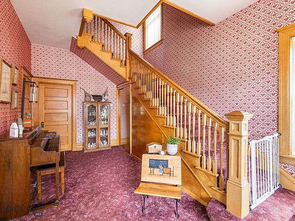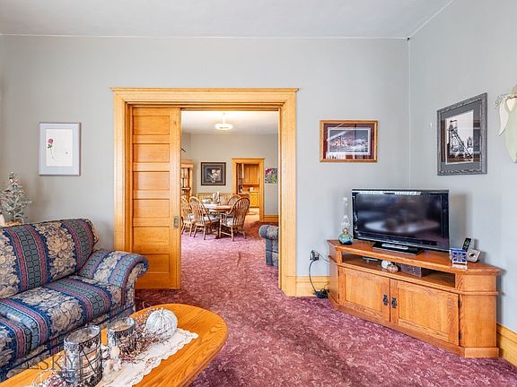 Stately home on the lower westside near Uptown Butte. This home has been beautifully maintained throughout and made significant upgrades. With 2756 sq ft of living space and 4 bedrooms, 3 baths, large formal living and dining room there is ample living space. You come into an impressive entry hall with an under stair coat closet and "pop out" storage cubicles. A working pocket door leads to the formal dining room with "non working" original fireplace with vintage insert. A bonus room/bedroom is on the main level along with an office off the kitchen. The farmhouse style kitchen exudes warmth and function with oak cabinets, stainless appliances, huge pantry cabinet with full extension pull out, mosaic glass backsplash. A full bath (without shower) and an office complete the main floor living space. A beautiful oak bannister goes to the second floor with high celilings rising as you climb. Three more bedrooms with builtins and some original light fixtures and a main bath with tub/shower provide comfortable living. One main feature is a 2nd floor deck off the master bedroom with new roofing material and low maintenance rail. A large back porch has a stairway to the basement with washer and dryer, laundry sinks, new boiler, new hot water tank and additional storage rooms and a workshop. The exterior has a spacious, fenced yard, large deck, drainage system, new cement work and sidewalk. Lastly, the windows have been updated and new roof in 2020.