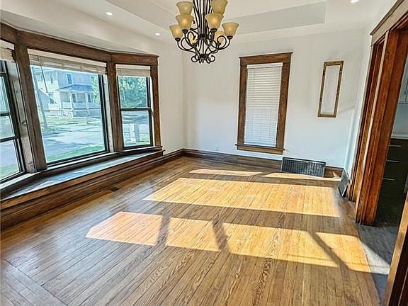 This beautifully restored 5-bedroom, 2-bath home blends classic character with modern conveniences. The renovated kitchen shines with updated cabinetry and sleek finishes, while both bathrooms feature stylish updates including a walk-in tile shower. The spacious layout offers plenty of room to spread out, and details like tray ceilings, pocket doors, and a main-floor laundry add comfort and charm. Outside, you’ll find a fenced backyard—perfect for kids, pets, or entertaining. All appliances are included, making this home truly move-in ready.