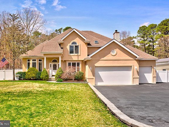 PRICE REDUCTION - MOTIVATED SELLER! This is the one you've been waiting for! Beautiful home on sprawling 5 acre Galloway Township estate where style meets convenience. Enter the long driveway that will lead you to a large parking area with space for all of your vehicles, boats, and RV-- plus an attached 3 car garage. The first floor features a cathedral ceiling entryway with large formal dining and sitting room, a home office, family room and the large, fully equipped kitchen that opens to the backyard oasis. The large back deck is perfect for grilling and entertaining, and there is also a built-in hot tub and pool, perfect for the whole family. The huge backyard boasts a kids play area, zip-line, vegetable garden, chicken coop and fire-pit along with irrigation. Plus, beyond the gardens fence-line (but still on the homes property) the owner has cut bike trails and a shooting berm into the wooded area. Back inside and upstairs, there are 4 large bedrooms including the stunning master suite with oversized shower and corner jacuzzi tub. Full basement provides more space to enjoy. Finally, there is a recently constructed pole barn with electricity and plumbing, a built-in workshop, and lofted area- -PERFECT for contractors, carpenters and car enthusiasts to work on their projects. The home is immaculately kept and shows pride of ownership throughout. This property is located in the Galloway Township school district with easy access to the GS Parkway, Atlantic City, Stockton University and more. Schedule a tour today!