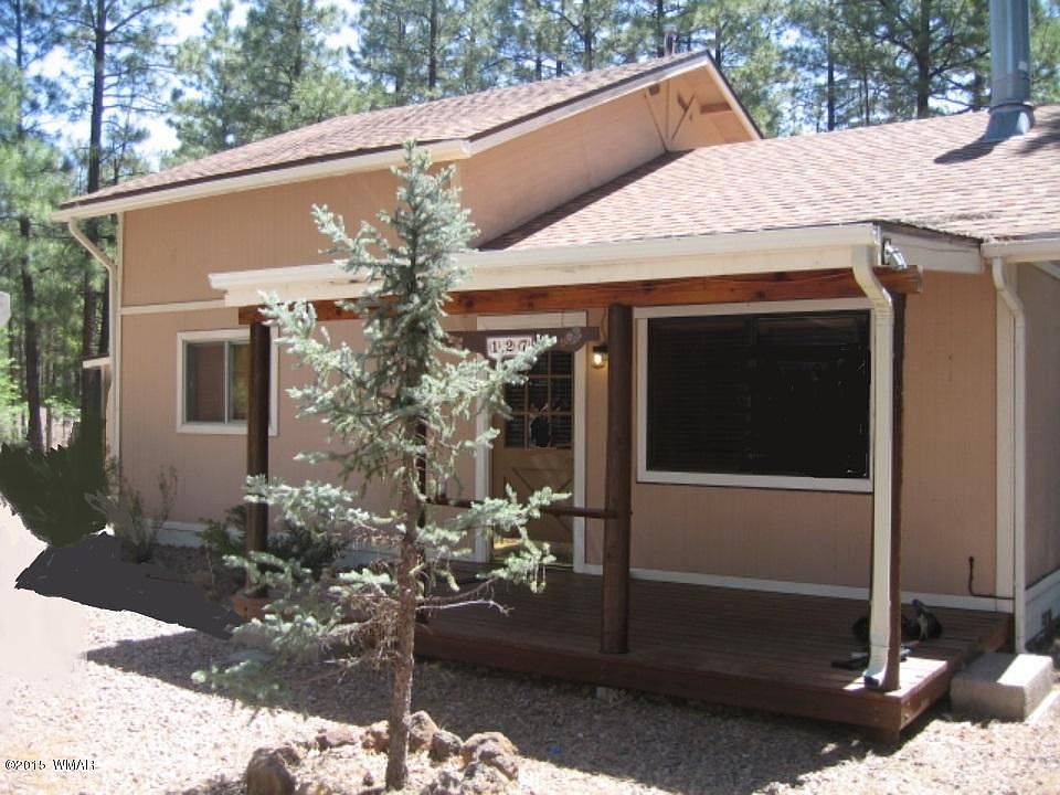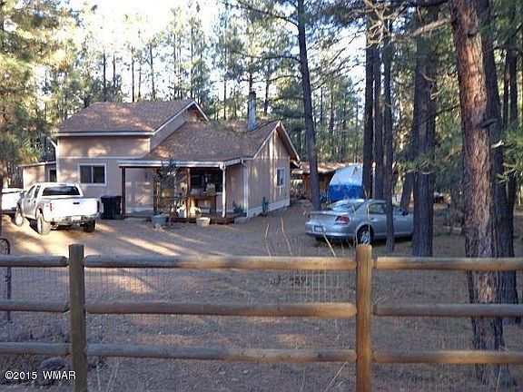 Beautiful location in the tall pines. Large treed lot that is fully fenced. covered deck to enjoy the weather. Cozy wood stove to warm the house. Master bedroom upstairs with private half bath, two bedrooms downstairs with a downstairs bath. Square footage varies from tax record buyer to verify. Close to everything the White Mountains of Arizona has to offer, Near Summit Heath Care Hospital and Sunrise Ski Resort
