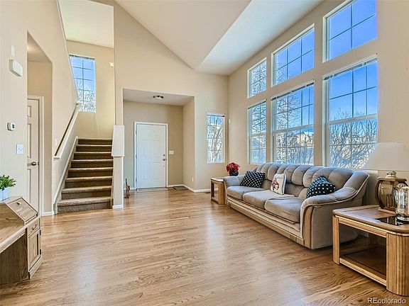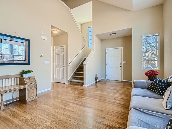 Wow, is not enough to describe this fabulous 3 Bed/3 bath Corner Unit Townhome with a Main Floor Primary Suite, Solid Oak flooring on main floor reaching from the front door through the living room, dining room and into the kitchen. The two story living room with North facing windows bring in tons of natural light to enhance the open dining area and kitchen with eating bar. Next to the kitchen is the laundry room opening to the attached garage (Washer & Dryer STAY!) The main floor Primary suite includes a private bath with soaking tub, two sink vanity and walk in closet. Privately spaced from the Primary bedroom, you can move up to the additional two bedrooms with a Jack and Jill Full bath opening to both. Walk out from the dining area through the patio doors to the private North Facing patio with HOA maintained shrubs. The community sidewalk is right outside this home for that evening walk. The home is in close proximity to the highly esteemed Erie Community Rec Center, tennis courts, sports fields, restaurants and Red Hawk Elementary School. Drive 30 minutes to Boulder, 20 minutes to Longmont and 10 minutes to Costco!!
