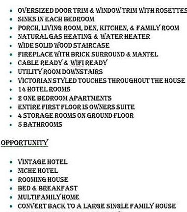 - SUITABLE FOR: Multi Family + Rooms, Rooming House, Other (See Remarks), Bed and Breakfast