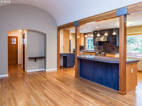 This stylish, mid-century modern ranch has been cleverly updated with smart, contemporary features. It is a unique gem situated on a corner lot in the Mt. Tabor neighborhood. The quiet residential settings with a short commute to downtown Portland make this an idea location. This is an exceptional property, perfect for entertaining guests or peacefully lounging on a Sunday morning. Every area of the home feels open and spacious with generous amounts of natural light. The kitchen has high-end, stainless steel appliances and a darling breakfast nook. The dining area, decked out with a barrel ceiling, flows nicely into the wide living room which has a fireplace and tray ceiling with set-back lighting. The master bedroom also has much to offer with its enormous walk-in closet. Other positives include the double-wide garage and a full basement with additional storage area and work bench. Outside, the Japanese garden inspired landscape will not disappoint. All around the home are colorful flagstone pathways and patio areas, Trek decking, and a covered seating area with a door directly off of the living room. All of this thoughtfully designed landscaping sits in a very pleasant and private setting. [Home Energy Score = 4. HES Report at https://rpt.greenbuildingregistry.com/hes/OR10071296]