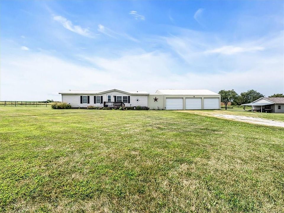 Nestled across from the tranquil Holden Lake, this charming 3-bedroom, 2-bathroom home features an oversized three-car garage with a breezeway, providing ample space for vehicles and storage. Safety is prioritized with a dedicated storm shelter, giving you peace of mind during stormy weather.