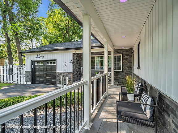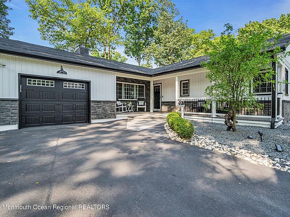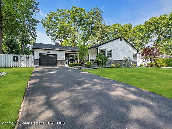 Gorgeous completely renovated ranch home nestled in the most desirable neighborhood in Brick- featuring brand new kitchen with new cabinets, recessed lighting, soft close doors and drawers with beautiful granite counters-**Brand NEW lifeproof vinyl flooring throughout- New bathrooms feature porcelain tile, and new vanities- New *roof (Timberline) shingles and vinyl siding -plus New landscaping and covered front porch where you can relax and sip your morning coffee-Wood floors throughout the house and neutral colors with wood plantation shutters in the den and the dining room is welcoming with a wood burning fireplace and a brand NEW back patio is inviting with a fully fenced yard. Great storage in full basement with extra crawl space are