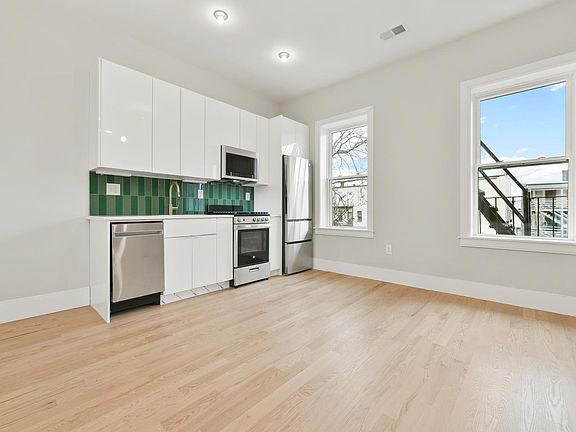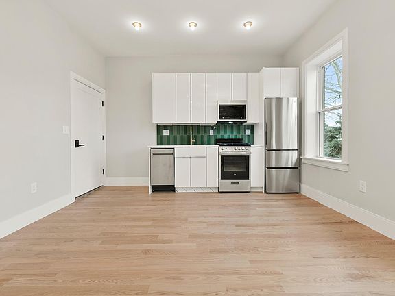 Come and see this newly renovated one bedroom one bath, Open kitchen and living room layout with just over 600SF of living space! The kitchen features black wood-colored modern cabinetry, stainless steel appliances and beautifully stained natural hardwood floors throughout. Bedroom includes double door closets for extra storage and outlets on every wall. This home offers washer and dryer in unit as well as central AC and forced hot air. New plumbing, electrical, insulation and gorgeous windows results in a highly efficient building and thus lower utility costs for tenants. Tenant pays utilities