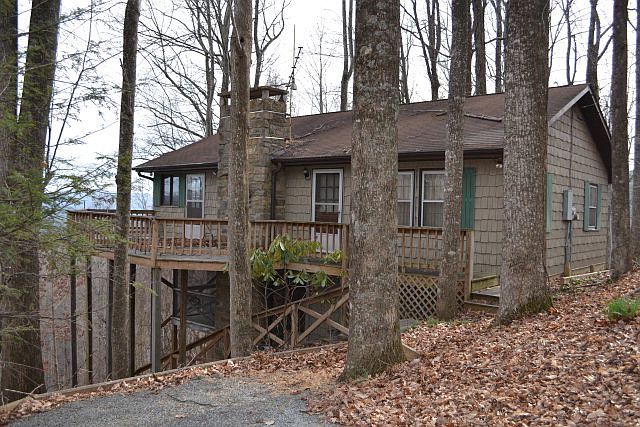 N.C.Mountain Cabin with Super Long-Range Layered VIEW. Kitchen/dining/den, with beautiful stone wood-burning fireplace, opening into Sunroom. 2 bedrooms and full bath complete the 1st level living, with easy access into the house. Partial basement has been finished with full bath, accessed from 1st level by spiral staircase, and outside entry door. BIG VIEW for small budget!