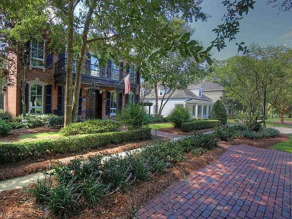 The front facade of this stunning, custom-built home is an exact replica, complete with custom designed wrought-iron, of the Ezell House in Mobile. Just step inside to see that the beauty reaches past the Bevolo gas lanterns and handmade arch over the impressive front door. Once inside, a gaze to the right will reveal the coffered ceiling of the living room which is highlighted by the flames of the Isokern fireplace. This unbelievable home has antique heart pine floors, a hand-applied silver leafed ceiling in the dining room, a wolf 5 burner gas range with down draft, Viking double oven, Sub-zero refrigerator, custom Kolbe windows, remote controlled retractable screens on the upstairs and downstairs porches, large master closet, rain shower head and Bain ultra tub. Come home to a movie and relax under beautiful reclaimed cypress beams in the comfortable Media room. The exterior landscape will reveal uplighting, a sprinkler system on a separate meter, copper gutters and downspouts, and a gorgeous porch and courtyard. Last stop...the three car garage. Welcome home!