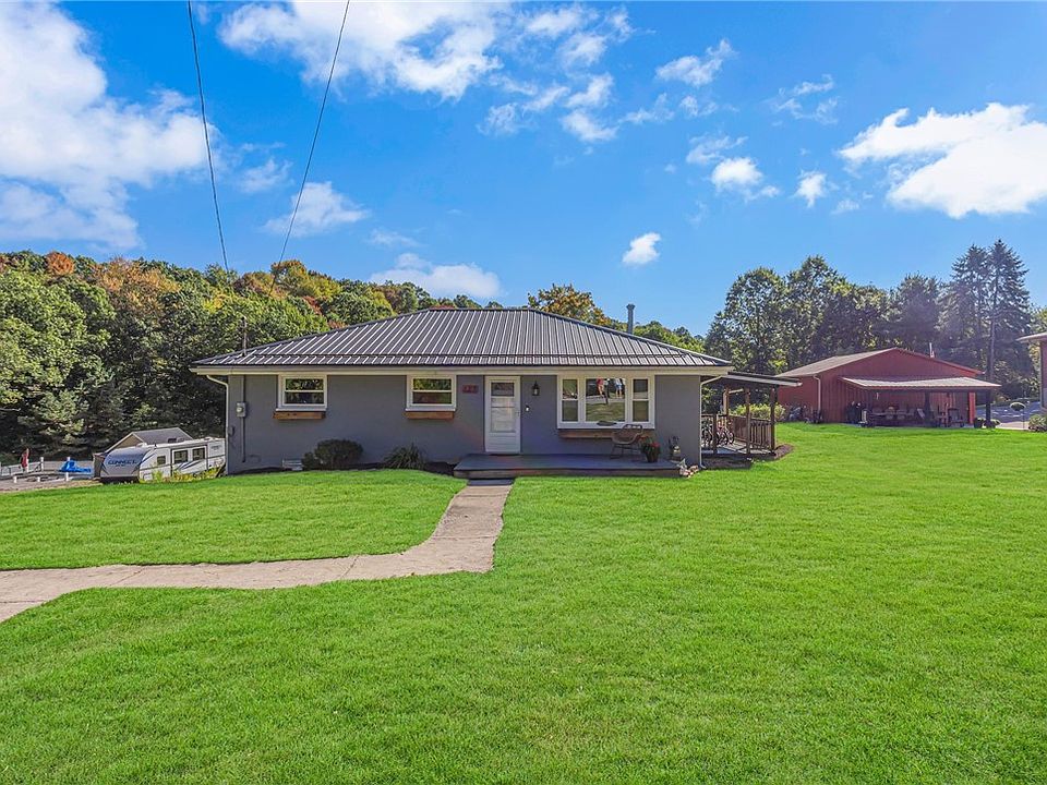 Move in ready solid brick ranch home with all the work done--Updated baths and kitchen with Stainless appliances--First floor laundry--Walk out lower level has an additional large family room, 4th bedroom, full bath and den--Newer metal roof and windows--Composite deck in the front and covered side porch--New well pump--Sellers insulated attic & lower level during remodel--Projector, screen and surround sound speakers in wall are included--water softener included-Home backs to the woods