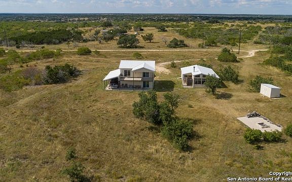 This private secluded property boasts a 2 story, 3 bed. 1.5 bath w/ amazing views from the second story. Also offering a 2 bdrm hunting/bunkhouse complete w/ screened in porch w/ stone fireplace. Property has a variety of terrain w/ heavily wooded area's to open grassy area's which are perfect cover & habitat for the abundant amount of Axis, Blackbuck, Whitetail Deer, Turkey, Dove, Quail & hogs. This property comes complete with 5 hunting stands & 5 feeders. Property sets teh stage for the perfect getaway!