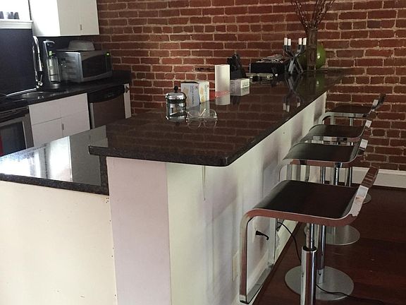 This beautiful two-bedroom, two-and-a-half-bath row house on a quiet, tree-lined street in the historic Bloomingdale district of Washington, DC is a wonderful base for exploring the city. The house is two blocks from Big Bear Cafe, half-a-block from Red Hen restaurant, and around the corner from Boundary Stone bar. The first floor features an open floor plan with tall ceilings, recess lighting, an exposed brick wall, and a bay window. The kitchen, with espresso-brown granite countertops, takes up the back of the first floor. A counter with four bar stools divides the kitchen from the living room, which takes up the front part of the first floor. Under the stairs leading up to the second floor there is a half-bath with a mosaic glass floor. The second floor has two bedrooms and two full bathrooms. Both bathrooms have bathtubs, contemporary vanities and light fixtures, and travertine stone tile floors. The master bedroom features a bay window with wooden shutters for privacy, a small TV, and direct access to the master bathroom. The house is available on February 15 for long-term rental. The $3100 monthly rent includes water and an alarm system (electricity is separate). Appliances include a dishwasher, and a washer and dryer. The house is unfurnished. Smoking allowed:No