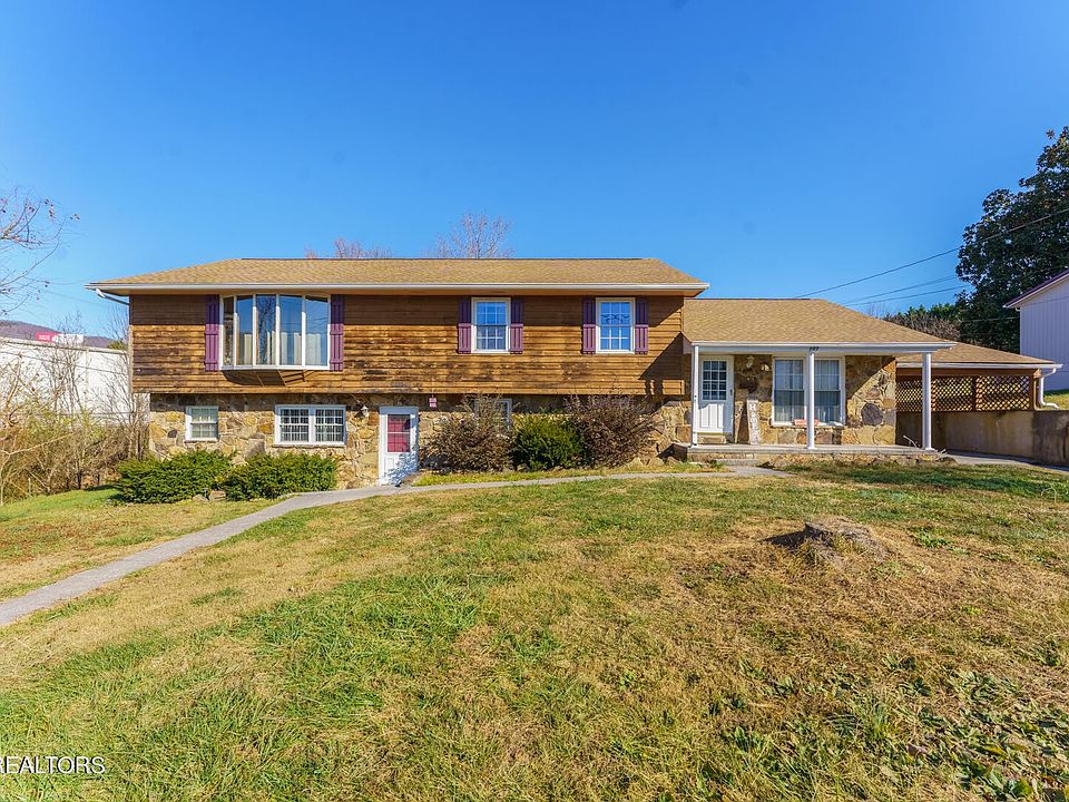 Welcome to this exceptional tri-level home in Jacksboro, TN, where convenience meets comfort. This property offers a prime location, providing easy access to shopping, schools, entertainment, and dining. The finished basement presents a versatile mother-in-law suite complete with a kitchen, full bath, and a spacious bedroom/living room area. The upper level features a generous living room, a well-appointed kitchen, three bedrooms, a full bath, a convenient half bath, and a large family room boasting two expansive bay windows. Ample storage space is provided with a large attic, shed, and numerous closets throughout. Enjoy outdoor living with an in-ground pool and a pool house featuring a half bath, all situated on an expansive level lot. This residence truly combines functionality, style, and the joys of spacious living. Adjacent to a year round running creek and a new roof. Schedule a showing today!