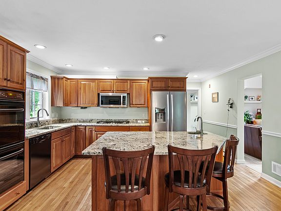 Beautiful WATEFRONT (200' with 2 docks)...Royal Barry Wills design home with 2,741 s/f, 3 bedroom, 2.5 bath, 1st floor primary with a/c, cherry kitchen with granite, attached screen porch, heated 2 car garage, large walk out basement, wood furnace and oil heating systems, large attic, paved driveway, natural stone walkways, irrigation, mature perennial gardens, flowering trees, and deeded beach rights to the neighborhood beach and boat ramp. Long pond is a 100 acre pond that is excellent for fishing, swimming, boating, water skiing or just watching the wildlife. Snowmobile right to the trail system. An attached river leads to Middle pond that is kayakible. Wildlife is everywhere with a resident Ospray, Herron, deer, fox, beavers, and frequent visits from Loon, Eagles and River Otters!!