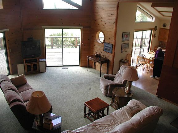 Golf Course frontage house just a few steps from the club house for Lunch or Dinner seen across the 9th green of LAW. You can see across to the first Tee and fairway of the first hole. Lots of perfects in this cabin: perfect size 1774 sq. ft. with 3 bedrooms (one is a loft) and a bathroom for each bedroom, with panoramic views of the 1st and ninth holes of the beautiful Lake Almanor West Golf Course; perfect for vacation or permanent living with easy approach to house and garage 484 sq ft an auto garage door opener. Next to the garage is a parking area for R.V. or boat. Plenty of parking. Built in 1988 and designed by Len Goldman. Huge party deck just refinished just over a year ago. All sales are subject to 6 weeks of vacation renters agreements. That could help pay for your ownership ($1,575 per week and 6 weeks rented already. All furnishings and fixtures are included for immediate use. Likely won't last long!