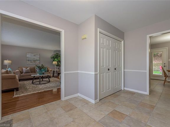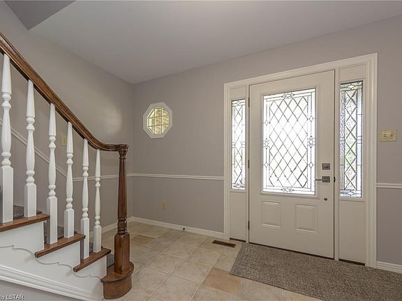 Lovey family home nestled amid mature trees in a quiet Byron cul-de-sac. Lush pie shaped lot (approx. 1/4 acre), thoughtful landscaping & a large deck create a private setting for summer days listening to the soft rustle of the leaves. Step inside to a sunlit foyer, spacious living room, & private dining room. Generous eat in kitchen features granite counters, stainless appliances including double ovens and garden doors to the deck. Large, inviting family room w/ romantic gas fireplace, crown moulding & beautiful windows. Rich hardwood & California shutters on both levels. 4 2nd level bedrooms including generous master suite w/ 3-piece ensuite. Fully finished lower level adds a wonderful gathering space with fireplace & games room area + guest room/den & gorgeous 4 piece bath. Newer Mennonite shed. Wide back yard with lots of play space. Shingles/skylights 2014. Driveway/sidewalk 2012. Furnace 2008. Windows/patio door: 2011, 2014, 2017, 2018.
