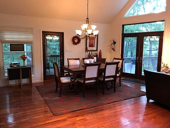 Best of Both Worlds-Lakefront and Private! You will not be disappointed when you see this gorgeous, custom-built,immaculate home. Perfect home for entertaining both inside and out w/ open floor plan, screened-in porch and huge deck with lake views. This home also features, beautiful hardwood floors, granite counters, large custom windows, cathedral ceilings, huge master suite w/ walk-in closet, central air, whole house generator, whole house surge protector, & security system. Full finished walkout basement w/ family room and full bath, 2 large storage rooms, & garage. Easy access to your private dock perfect for relaxing, kayaking, or canoeing. Also enjoy the many community amenities including a beach, restaurant, tennis courts, basketball courts, ball field, dog park and picnic area