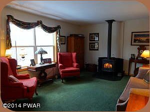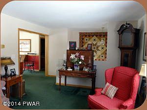 Located in the heart of the Pocono Mts. and in a very Private Community is this well kept 3br, 2 1/2 ba Ranch w Master Suite on 3.57 acres. Attached 2-car garage. Close to I-84, Lake Wallenpaupack and Mt. Airy Casino Resort! Borders very large tract of private lands.