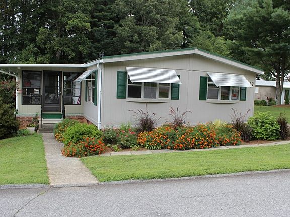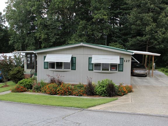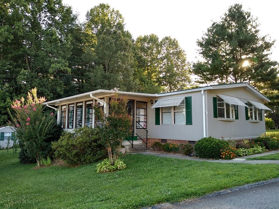 Very well maintained doublewide in a nice 55+ retirement park in the Flat Rock area of Hendersonville..This lot is in the higher area of Spring Haven on a corner so it has more privacy than most of the units, back view is of woods. Composite wood siding instead of vinyl on the exterior. Split bedroom plan. Dining room, large living room, kitchen has newer appliances, dishwasher, outside vented hood, island and pantry. Trane heat pump is 2 years old, metal roof 2 years old, New carport with some clear panels to provide more daylight , 10x19 sunroom is finished but not heated, gas monitor heater emergency heat, 8x10 storage shed. Some storage in crawl space w/vapor barrier on floor.