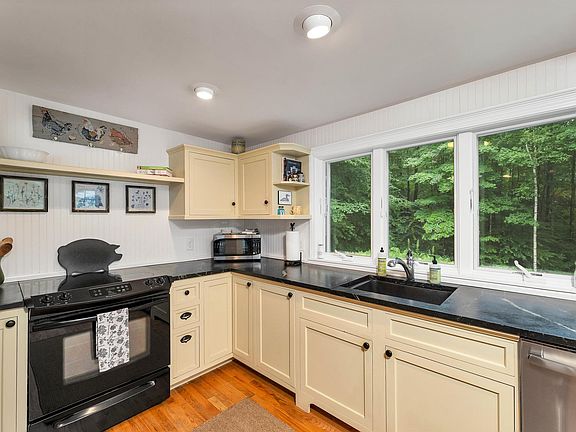 This charming 19th century home is nestled between vibrant flower and vegetable gardens and shrubs, and set on 8+ serene acres in picturesque Sandwich. Minutes away from the historic covered Durgin Bridge and the Cold River, this setting is New England at its finest. The Gambrel style home has been completely renovated and boasts soapstone kitchen counters, hardwood floors, meticulously crafted woodwork and nooks, energy efficient windows and doors, and an inviting home office space. Snuggle up next to the wood stove in the open plan kitchen/dining area. The finished basement is an extra bonus that provides a perfect space as an exercise or family room. The spacious screened porch off the patio is a warm weather haven for outdoor dinners and enjoying nature. The next owners will enjoy the peace-of-mind provided by a whole house generator which has just been installed. Sandwich residents have access to high speed fiber optic internet and can enjoy swimming and boating on Squam Lake, Bearcamp Pond, and the famous "Pot Holes" swimming hole. Center Sandwich boasts The Foothills Cafe, the Corner House restaurant, John Davidson's Club Sandwich and wonderful shops and galleries to enjoy. Open House on Sunday July 28, 11 - 1:30 pm.