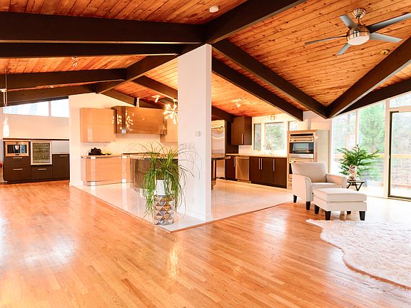 **5BR/3.5BA Custom Contemporary renovated with modern luxuries in a pristine community ** Fabulous open FloorPlan highlighted by soaring beamed Cathedral Ceilings, Picturesque Windows providing panoramic views& natural lights, floor to ceiling StoneFireplaces and Hardwood flooring. Unique high styled Kitchen w. custom Cabinetry, circular Central Island, SS Appliances including WOLF professional Cooktop & double Wallovens,porcelain Tile Floor & Backsplash; Master BR offers Walk-in Closet, slider to the deck & a completely transformed luxury Master BA: double vanities/ sinks, freestanding Tub & a separated Shower/ Toilet RM. A resort like Backyard w fenced Pool, Gazebo,Stone Paved walkway & landscaping;Full Finished Walkout Basement; Circular Driveway. Excellent Commuter's location!!