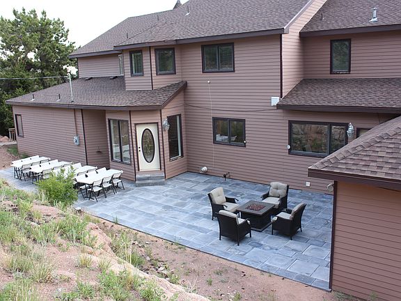 Alpine Vista Retreat is a secluded Colorado luxury mountain income property, vacation home rental, or private residence. A beautiful setting in the beautiful Rocky Mountains. Million dollar views of the Sangre de Cristo Mountain range and City lights of Canon City at night. Scenic location near the casinos and shops in Cripple Creek, Pikes Peak, Royal Gorge, and many of Colorado's attractions. The home includes 10 bedrooms (9 of which have attached bathrooms); an attached 3 car garage, sauna, a huge wrap-around 3-story deck, a 5000 sf double-level front patio including waterfall, a back patio, etc. Most of the bathrooms contain hydrotherapy tubs as well as showers. The huge kitchen includes granite counters, stainless appliances, double oven, 2 microwaves, 5 burner gas cooktop, and dishwasher. The home also includes a whole-house steam humidifier system, laundry chute, and 3 washers and 4 dryers in the main house and 1 washer/dryer in the mother-in-laws apartment. There is also a detached mother-in-laws apartments with 2 bedrooms and 3 bathrooms, double garage, and huge deck.