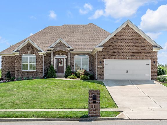 The perfect all-brick ranch in sought-after Cherry Blossom Village will check all the boxes. With relaxing golf-course views, this 3 bed/2.5 bath quality built one-story home features an open floor plan and 9 and 10 foot ceilings. The split bedroom design includes a luxurious private primary bedroom with en suite bath boasting a huge tile shower and large walk-in closet. The additional bedrooms are sunny and bright and an office with French glass doors at the front of the home is perfect for those working from home. With a formal dining room, pretty eat-in kitchen, and large great room with cozy fireplace, you'll have a wonderful setting to entertain but equally delightful for everyday comfortable living. Wander outside and enjoy your covered back patio and beautiful view of the golf course. And whether you golf or not, you have the bonus of Cherry Blossom amenities available to join and room in your garage for 2 cars plus golf cart! This might be just the home you've been waiting for!