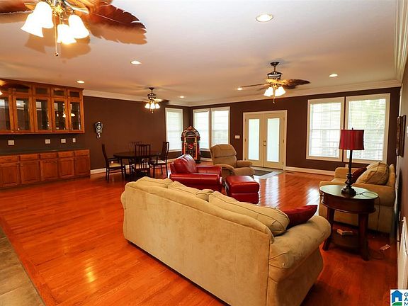 Whether you love the sunrise or sunset on the lake this is the place to be! Covered porches on both sides of the house give you plenty of space for outside enjoyment. This home is a spacious 3597 square feet . Both floors have a spacious open concept living room/kitchen with an adjoining half bath. Both kitchens have Corian counter tops and beautiful cabinets. Both floors have 2 Master Bedrooms with full baths, Each bedroom has access to the covered porches that give you the beautiful view of the 513 feet of waterfront and the well manicured lawn. There are 4 spacious acres on the lake for entertaining with two beautiful metal gazebos. At the shoreline is a metal movable one slip boat house with composite deck. It also has an upstairs deck for sunbathing and enjoying your favorite beverage. Only 8.5 miles from Pell City this paradise can be the perfect family getaway or used for more lucrative purposes. Must see all the amenities to appreciate!!