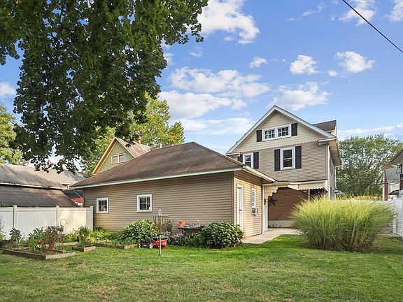 Fantastic opportunity to own a spacious single-family home right in the heart of Riegelsville Borough—just steps to the Delaware Canal, river, and local restaurants. Situated in the highly rated Palisades School District, this 4-bedroom, 2-bath residence offers charm, character, and modern convenience. From the inviting covered front porch, enter into a warm and welcoming living room that flows seamlessly into the oversized dining room through a wide cased opening—perfect for gathering and entertaining. The bright kitchen at the rear of the home features abundant cabinetry, generous counter space, and an open view to the covered back patio, an ideal spot for dining al fresco or enjoying the outdoors in every season. Upstairs, you’ll find three well-sized bedrooms, with two full bathrooms thoughtfully positioned on each end of the home for convenience. The third floor offers a spacious fourth bedroom with excellent closet storage that also functions beautifully as a family room, home office, or bonus retreat. Additional highlights include a partially finished basement with plenty of storage, a detached two-car garage with extra high ceilings, driveway, and street parking—rare for in-town living—as well as an attached studio/workshop space, perfect for artists, hobbyists, or those seeking a quiet work-from-home setup. The fully fenced backyard provides privacy for play, gardening, or pets. This sought-after location offers a walkable lifestyle with easy access to restaurants, towpath trails, and the tranquility of the Delaware River. Don’t miss your chance to make this special property yours! Low Real Estate Taxes.