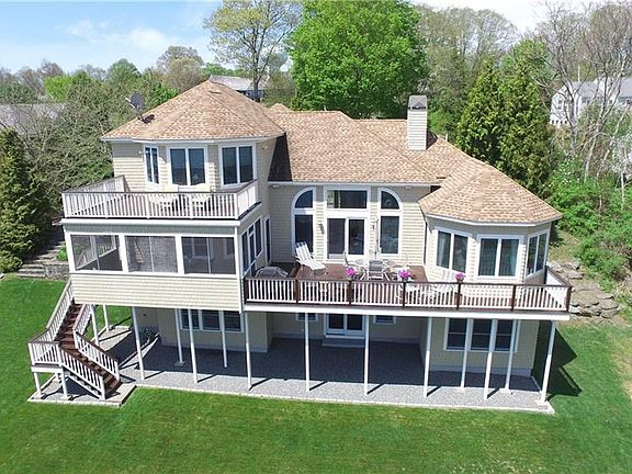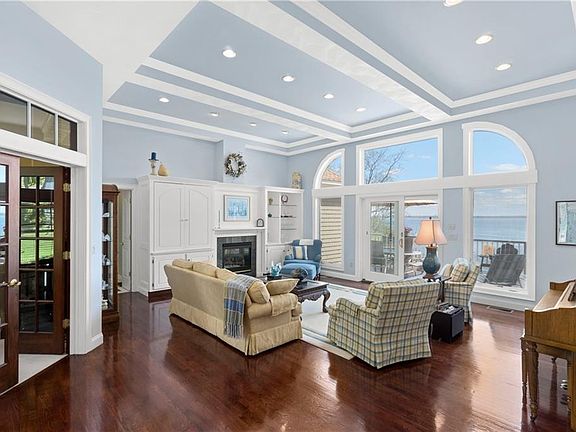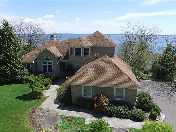THIS EXQUISITE OCEAN-FRONT HOME SHOWCASES THE FINEST CRAFTSMANSHIP WITH 12' TRAY AND COFFERED CEILINGS AND OFFERS 180 DEGREE PANORAMIC WATER VIEWS FROM ALMOST EVERY ROOM, 109' OF PRIVATE OCEAN FRONT/BEACH WITH DOCK POTENTIAL, CHEF'S KITCHEN WITH LARGE ISLAND, GREAT ROOM WITH FIREPLACE AND SURROUND SOUND EXTENDING TO LARGE MAHOGANY DECK FOR ENTERTAINING, FIRST FLOOR STUDY/LIBRARY WITH FIREPLACE, MASTER SUITE WITH FIREPLACE AND SPA-LIKE BATH, PLUMBED BATH IN UNFINISHED WALK-OUT BASEMENT WITH FULL WATER VIEW. NO FLOOD INSURANCE REQUIRED.