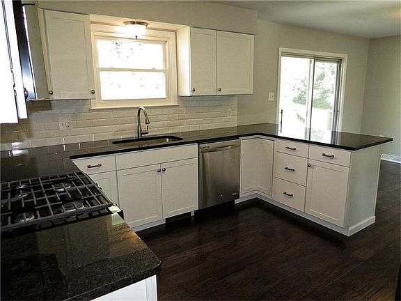Outstanding renovation with chic, clean updates and an open floor plan! This picture perfect 3 bedroom 2 bath ranch home features an ALL NEW kitchen with granite counter tops, SS appliances, high profile brush nickel faucet, breakfast bar with seating & engineered wood floors, dining area with wood floors and sliding door to 15X12 alfresco wood deck with access to rear yard, 2 ALL NEW baths with ceramic tile floors & tasteful fixtures, lower level family room with recessed lighting & adjacent bath, ALL NEW paint & flooring throughout, new windows, NEW cement walkway and steps with no maintenance vinyl railings, 2 stall integral garage & private rear yard that backs to woods! Blackhawk schools. Quiet street yet all amenities such as dining, shopping, banking, library, 2 parks, 2 golf courses, etc. within 5 minutes! The location is a commuters delight with quick & easy access to I376 & PA turnpike! Add this home to your must-see list!
