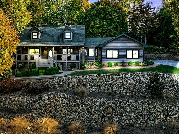 This exquisitely maintained and updated Tennessee Log Cabin home with just under 3000 square feet on a beautiful over 1/3 acre lot is ready for you to call home. Picture yourself sitting on your front porch having morning coffee or tea in the quiet neighborhood of Foothills Pointe with a view of pristine Tellico Lake and the Tennessee River while listening to the rock waterfall next to you. Then take your pick of the many options of things to do in the neighborhood with lake access for your boat, community dock, tennis courts, swimming pool, clubhouse, pickle ball courts and picnic areas. Quality built custom log home features 3 bedrooms (each with walk in closets), 3 full and one half bathrooms; tons of storage; a 2-car garage plus a golf cart garage/workshop including workbench and peg boards; kitchen with leathered granite countertops, stainless steel appliances, custom hickory bar top with live edge, and a view out to the wooded and private backyard; main level primary suite with custom closet, bathroom with dual vanities, separate tub and shower and wormy chestnut custom cabinets with tub surround or enjoy cool nights in your family room in front of the cozy gas stacked stone fireplace. The HOA and includes the amenities listed above and your sewer/septic system pumping, repair and/or replacement if it becomes necessary, and waiting list for dock rental. A few other features to note include a 75-gallon commercial water heater installed 3/2019; HVAC system installed 6/2019; leaf guards on gutters installed 7/2024; natural gas stubout for outdoor grill; encapsulated crawl space; saniflow system in basement; extra storage room in basement in addition to the mechanical room storage; conrete all the way around the home for ease of maintenance and so much more. If you are looking for a larger lot, the adjoining lot at 129 Timberlake can also be purchased. Please ask for details. Bunk beds and their associated mattresses and bedding will convey with the home.