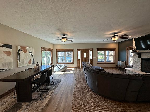 Beautiful 4 bedroom 4 bathroom WATERFRONT and FULLY FURNISHED home! Enjoy this stunning home full of refreshing updates and charm! Put your mind at ease when away with this house full of Smart home features, including brand new Smart refrigerator, Smart home thermostat system, Smart HVAC system in garage, Smart security locking system on doors, Smart water monitoring system, 7 exterior cameras, Wifi Pitboss grill, & voice command features throughout house. This home was thoughtfully set up to allow a vacation home with peace of mind while away, or convenient features for a full time residence. Nearly every window in this house offers a water scene, as well as loads of natural lighting. Walk in to the comfortable and inviting living room, complete with voice command fireplace, extra seating and breathtaking sunset views of Table Rock Lake out to the Kimberling City Bridge. Venture further to the spacious stunning kitchen with custom wood cabinets, granite countertops, high end appliances, brand new fridge and cooktop. Travel up to the second living space set up as a highly functional game room! So many memories to be made here, lots of fun for kids and adults alike! Large windows really accent the gorgeous new flooring throughout the home. Master bedroom is a true gem with its own sitting area and stone fireplace, as well as massive walk in closet and en suite bathroom complete with large walk in shower! Private balcony from the master bedroom offers absolute relaxation with elevated water views & peaceful tidal sounds. Plenty of hosting space with multiple sleeping options in bedrooms. Loft above garage can be separate living space or guest accommodations! This upper loft has the best views of the lake with large landscape picture windows to enjoy the scene. Enjoy the water views from two peaceful sitting areas, the upper balcony or lower porch or walk right down to the waters edge & take a dip in the cozy swimming alcove of the lake just yards away-Slip available!