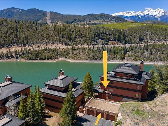 Imagine living in this exceptional location with one of THE most spectacular settings in Summit County. Relax on the south facing deck watching boats float by on Lake Dillon. Kitchen, living and dining area encompassed by water and mountain views. Pride of ownership with a full renovation including travertine tile, countertops and new appliances. Primary suite with SunTouch in-floor heat, double sinks and walk-in shower. Bonus room is perfect for home office or guest room. No short term rentals.
