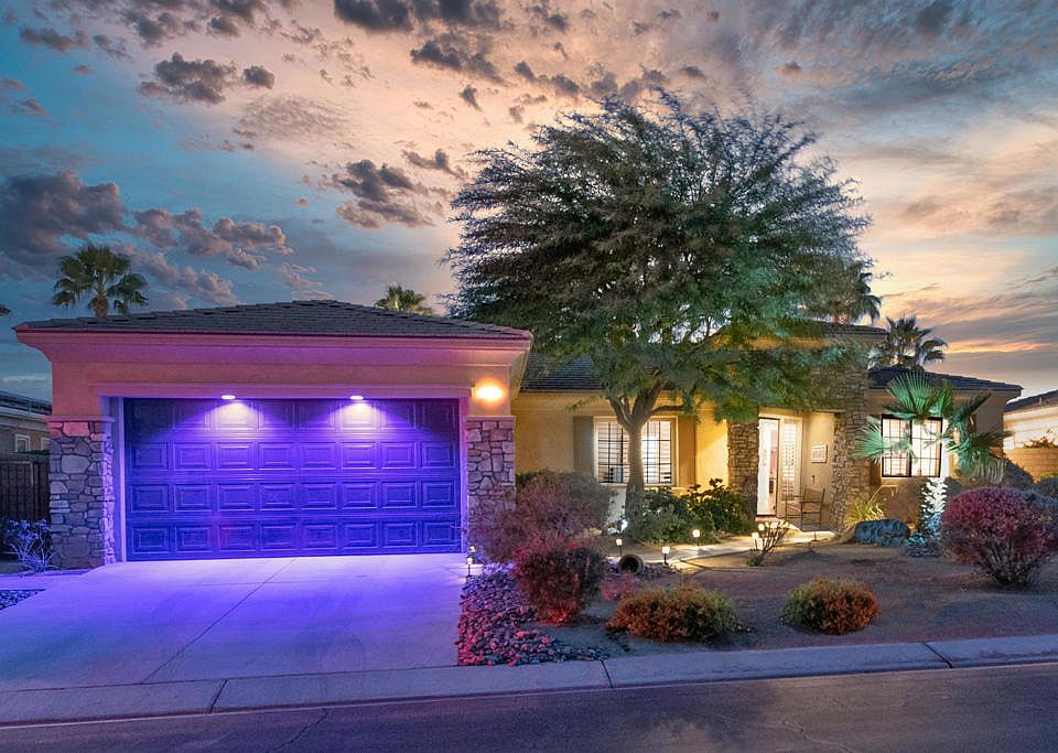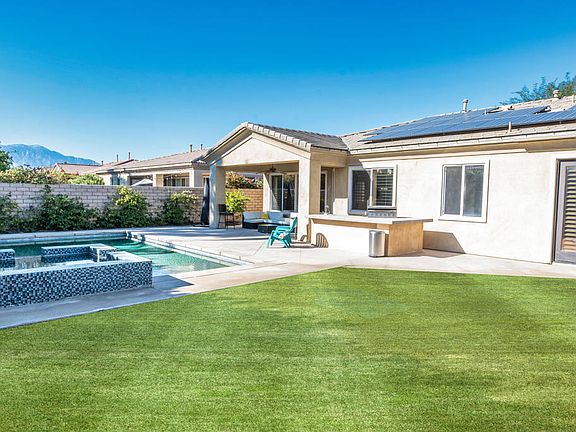 Contemporary 4 bedroom home plus office WITH SOLAR located in the gated community of Amatista at Capri. A floor plan like no other in Capri... Re-designed contemporary. New kitchen with island and work space, double ovens, wine refrigerator and quartz counters. 3 new contemporary bathrooms. Walk in showers & primary has dual heads. New plank tile flooring throughout & plantation shutters in every room. A sliding barn door closes off the office / flex space for privacy. An open great room floor plan allows a seamless flow of indoor/outdoor living. Solar efficiencies add to all the perks of this special home, with major energy savings each month, and solar even powers the pool and spa! Outdoors is just as impressive. Sparkling new pool and spa, + outdoor BBQ Island on a large coveted southern exposed backyard with covered patio sets the scene for your own private entertaining or relaxing oasis.Centrally located in Palm Desert near Liberty park and close to everything in the Palm Springs valley from fine dining, famous El Paseo Dr, airport, hospitals, theatre including the upcoming Acrisure Arena; a multi-purpose 10,000-seat indoor arena to be completed in late 2022, Walt Disney's Cotino community with hotel, retail, beach and lagoon, Palm Springs Surf Club, & DSRT Surf in Palm Desert. And a short drive to the polo fields and Spring Festivals. The Perfect full time or part time playground, or rental income opportunity with super low HOA dues of only $95/mo. What a value!