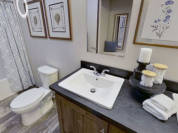 8’ Flat Ceilings Throughout OSB Sheathing and 2×6 Exterior Walls Single Hung Low E White Vinyl Windows 32” 2-Panel White Interior Doors with 3 Mortised Hinges – Bathrooms and Bedrooms 36”x80” Residential Fiberglass Front and Rear Doors Ecobee3 “SMART” Thermostat Fiberglass Shower in Master Bathroom Fiberglass Tub/Shower in Second Bathroom Residential Carrier High Efficiency Furnace Carrier Air Conditioner Insulated Foundation Enclosure with vents Gutters on Front Door Side of Homes Entry Steps Composite Deck Boards – Vinyl Rails Rheem 40 Gallon Gas Water Heater