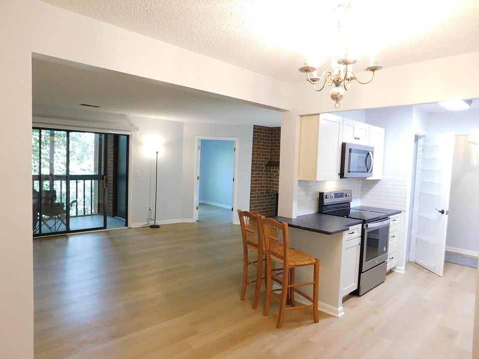Tastefully upgraded/renovated condo in a great location. This is the largest floor plan Turtle Creek has to offer with a bonus Solarium room. This unit backs up to large trees. * Premium Luxury Plank Flooring throughout * Large Living area with working wood Fireplace * Both Bedrooms have walk-in Closets *Bathrooms updated and convenient with one walk-in Shower and one Tub *Balcony with Storage Room *Public transportation is right outside the Complex *Trader Joe's, I-Max and Stonefield Shopping Center are within walking distance * Lots of community amenities: 2 Swimming Pools, 2 Tennis Courts, Gym, Pool-house for gatherings ' Water, Sewer, Ground keeping, Garbage removal are included in rental fee. Tenant pays electricity and upgraded cable, internet service. No Pets (Turtle Creek HOA rules) No Smoking
