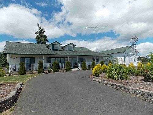 Complete info: http://127twinviewlane.agentmarketing.com - As the address suggests, Twin view really does mean an open view of both Mt Rainier and Mt ST Helen's. This lovely one level home capitalizes on that view with a full wall of windows in the living room, large windows in the master bedroom and outside seating on a covered porch that takes full advantage of the property and the view. Think of this home as a playhouse for adults, while still being very child friendly. One of the most prominent features, noticeable as one first walks into the game/living room is a massive wet bar with seating, display cases, sink, pass through to kitchen, etc. Off to the right of the living room is the pool table ( one of many of the &guot;toys&guot; that can be purchased outside of the real property sale) and on the left is the TV center with it's seating around the cozy propane stove. Beyond the living/game room is the dining room which can easily seat 12+ people and is open to a huge (an adjective used quite frequently when describing this home) kitchen with 52' of cabinets, quantities of drawers, high end Jenn-Air appliances, center isle with cook top, three (3) breakfast bars with seating, walk in pantry, TV etc.. This kitchen can fit 6 chefs without them bumping in to each other. The home located at the end of the cul-de-sac on a private road and is accessed via a paved circular driveway. The property itself backs up to 45 acres of abundant pasture. There are fruit trees - apples and cherries - and while currently not used for horses, the property could easily be converted to such use. This immaculate custom home has so many upgrades, it is not possible to describe them all n the space allowed for in a standard listing. The property features touch on the most prominent. Just as access to the house 'flows' so does the split floor plan, with master bedroom at one end of the house and the other two bedrooms and guest bathroom at the other. Every room is bright and spacious with high ceilings, ceiling fans over wet bar and in master bedroom, hardwood floors or deep carpet throughout. Wide hall ways and doors lend this one level home to being adapted for wheel chair accessibility. List of features includes Paved circular driveway Heat Pump for efficient heating Built in blinds in glass door - never need cleaning Dormer type vertical skylights that bring in the light but don't fade furniture - easy to clean High tech wiring throughout the house for TV, Phone and Internet (over 10,000' of Cat-5 wiring installed - owner used to work for a telephone company.) Over sized 80 gallon hot water heater with re-circulation pump so that hot water is instantly available. This system actually saves energy. 2 pressure tanks Water filtration system Central Vacuum cleaner 20' x 30' private covered patio in the back of the house - plumbed with propane for BBQ hook up Over-sized two car insulated garage with built-in cabinets, extra storage in the ceiling (great for storing Christmas decorations) that is accessed through pull down ladder. 2&guot; x 6&guot; construction. Attached insulated 12' x 28' shop (which could also be used as a garage) with lots of built-in cabinets and work benches, sink, wired for phone & TV, 220V, another garage door and automatic opener and compressor hook ups - truly a &guot;man ( or woman) cave&guot;. 26' x 46' attached RV storage with 14ft doors and auto door opener, 2 complete hook ups for all utilities water, TV, phone, septic and electricity - one inside the shop and one outside for second RV, essentially turning one or two RV's into additional guest quarters. More shelves and storage, again all in 2&guot; x 6&guot; construction. 2 Ham radio towers, one 60' and one 40' high - buyer has the option to purchase Raised panel, solid core doors French door to a huge Master Bedroom Two wings (his and hers) in the Master Bathroom; each one with its own counter, sink