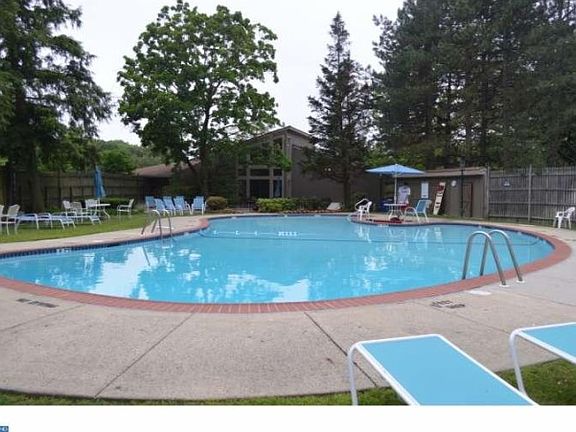 A beautifully maintained end unit in a great location in Uxbridge. This is one of the largest 2 story units in the community. It's located adjacent to a tree lined part of the property and is within steps of the clubhouse, with pool and tennis courts. The unit comes with 2 parking spots near the entranceway. Neutral colors and natural light abound as you enter the home. At entrance, the flooring is an octagonal terracotta tile that provides a durable and colorful presentation. Excellent area and flow on the main level?Family Room/Den, space for formal Dining Room, and a Living Room with wood burning fireplace. Two slider options to access the brick surrounded outdoor patio facing the woods. An open staircase leads to the 2nd floor. Three nicely sized bedrooms with outstanding closet space. Laundry on 2nd floor, right outside the master bedroom suite. This home has 2 full bathrooms on the 2nd floor and a half bath on the 1st floor, perfectly located. There's a spacious 3rd floor storage area accessible by a professionally built-in stair ladder. A quiet and private feeling community offers quick and easy access to restaurants, shopping, trains, and highways?not only in Cherry Hill, but situated minutes from Haddonfield and Voorhees. Maintenance fee includes access to clubhouse, use of pool and tennis courts, exterior building maintenance, grounds maintenance, snow removal, & trash removal.