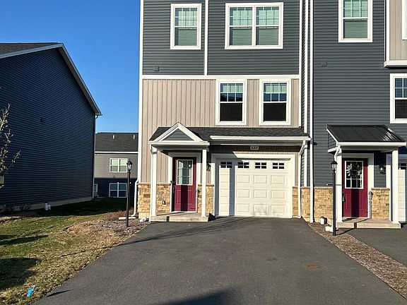Like New! Located in the State College school district, this bright and spacious three-level end unit Bradfield townhouse features 3 spacious bedroom, 2.5 baths, dining room, roomy living room and L-shaped kitchen. Lower-Level Features: Entry foyer with closet, vinyl flooring, garage entry, and a walk-out basement that leads to the rear yard. Main Level Features: L-shaped kitchen with an island overhang, stainless steel appliances, immaculate white cabinetry with upgraded handle fixtures, granite counter tops, and vinyl flooring. Dining area provides access to an elevated 10ft x 10ft rear deck via sliding glass doors. Family room features 2 single window which provide lots of brightness, recess lights and Powder Room with ceramic tile flooring. Upper level Features: Fully carpeted Owners suite, walk-in closet, full bath with upgraded double vanity, fully tiled shower and ceramic tile flooring. Bedrooms 2 & 3 have carpet flooring and sliding closet doors. Secondary full bath features a single vanity, shower/tub combo and ceramic flooring. A linen closet is located adjacent to full bath in hallway. The laundry room is enclose by double doors, side by side washer/dryer and vinyl flooring.