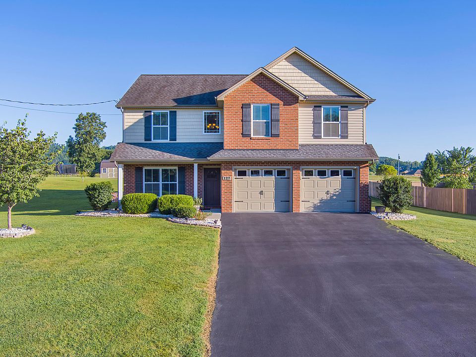 This beautiful 4 bedroom, 2.5 bath home with large 2 car garage is conveniently located in Gray, TN in the heart of the Tri-Cities. This nearly 2500 sft home has a spacious open floor concept. The gorgeous kitchen has granite countertops, an Island with additional counterspace, tile backsplash and GE stainless steal appliances. Off of the kitchen you will find a walk in pantry, half bath, and laundry room. The downstairs is completed with a formal dining room/office, cozy living room with fireplace and eat in kitchen area, the downstairs has beautiful hardwood floors throughout. Upstairs you have 3 large bedrooms that share a full bath with dual sinks. Two storage closets are perfect for winter attire or towels/linen closet. The spacious owners suite features, vaulted ceiling, sitting area, and fireplace. The large primary bathroom offers double vanity sinks, jacuzzi tub, walk-in shower, and large walk in closet. Enjoy all of your outdoor entertaining on the patio in the huge backyard, including 16x20 metal outbuilding. Schedule your private showing today to see this spacious home.