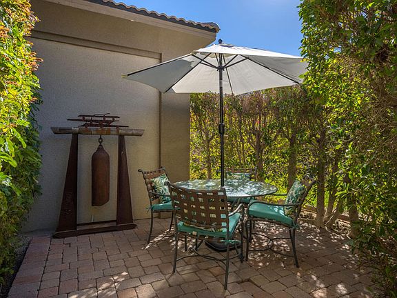 Imagine a solar home in a quiet, gated neighborhood in desirable South Palm Desert that is beautifully upgraded, lovingly maintained and immaculate in every way. Then, imagine that it is priced appropriately for today's market, not last year's. That home is 127 Vista Valle, in the peaceful 86 home community known as Vista Paseo. Located at the end of a quiet cul-de-sac in the very back of the development, this residence features three bedrooms, three and a half baths, two fireplaces, a salt water pool and spa and so much more. The kitchen was completely remodeled in 2021 with quartz counter tops, a five burner Wolf cooktop, Viking oven, microwave and French door refrigerator/freezer. The primary bath has a brand new walk-in shower with rain and wand shower heads, Robern medicine cabinet and...wait for it....a remote heated bidet toilet seat! The primary suite also features a large, walk-in closet. Each secondary (guest) bedroom has its own ensuite bath, plus there is a powder room as well. The salt water pebble surface pool was completely reconstructed in 2022 including new equipment. The back yard and pool area is very spacious and totally private. Wear whatever you want or nothing at all! At the entry to the home is a lovely sitting area, discretely hidden behind a hedge for privacy and shading. Vista Paseo is an easy stroll from the shops and restaurants of El Paseo, and the HOA dues are only $125 per month. This is a true must-see if ever there was one