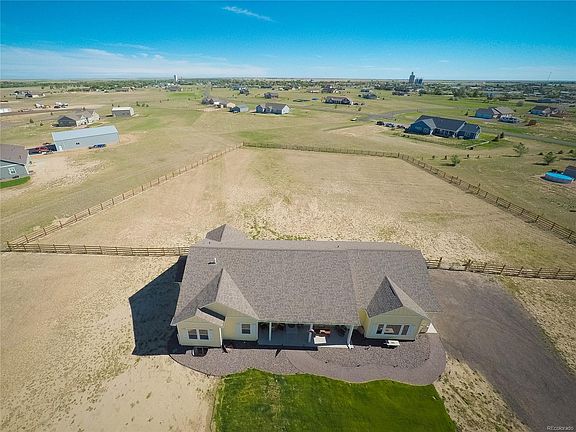 Beautiful open floor plan with popular features such as a 3 car-oversized garage and bonus loft space. Kitchen has Knotty Alder cabinetry, solid oak hardwood floors, matching stainless appliances and granite countertops. Large master suite has 5 piece bath with separate shower and soaking tub that comes with a view. Main floor laundry room/mud room with a powder room. Huge unfinished basement with bathroom rough-in, radon mitigation system is waiting for you to make it your own. Over 2 acres of fenced in land...that means you can have up to 2 large animals (horses etc...) and chickens. Quiet country living with wilderness trails, but easy access to the city and DIA. This is a beautiful home, come check it out before its gone.