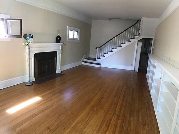 Two stories, large, bright and quiet. Historic designation, hardwood floors, clean, private. Kitchen, breakfast room, W/D included. High ceilings, cozy gas-fired steam heat. Large built-in bookcase in LR, built-in china cabinet in breakfast room. Unfurnished. Parking for 2 cars on street, extra fee for additional parking in rear. Main house built in 1882, apartment added later. Private entrance. Tennant responsible to clear sidewalks in front in winter. Non-refundable pet deposit: $150 Owner pays trash, sewer, water, electric. Tenant pays heat (natural gas/steam) and cable/internet