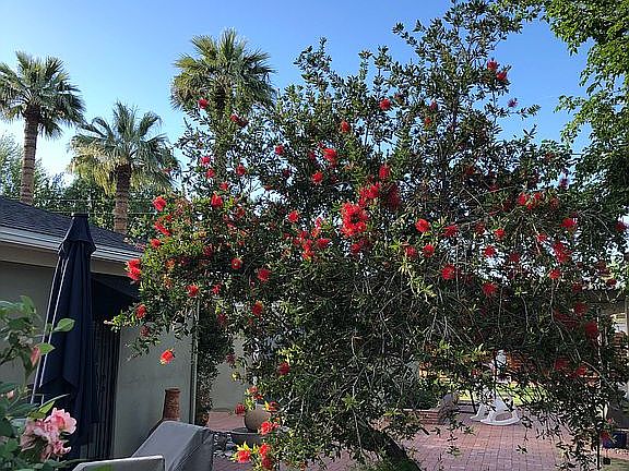 6 bedroom, 4 bath, large family room, living room w/gas fireplace, formal dining room, front porch, rear porch, large fenced pool/spa, 12'x11' storage Tuff Shed w/attic, freestanding 261 sq. ft. grandmother's apt w/kitchen, bath, queen bed, wifi/cable, large front yard w/irrigation and sprinklers, large fenced backyard with sprinklers and drip, raised vegetable/flower beds with drip, shaded sitting area, large trees, orange and lemon trees, fountain.
