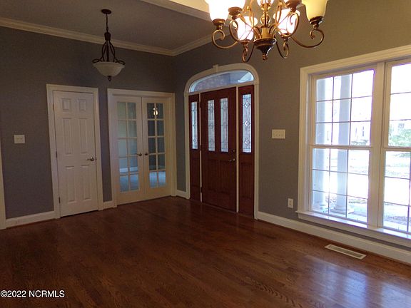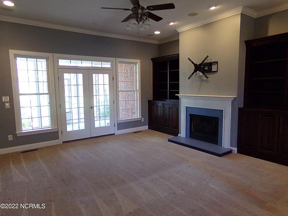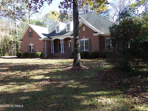 This upscale stately brick home on 2.3 acres, with views of and dockside access to Boleyn Creek, might have the perfect combination of country features and location in the highly attractive Taberna neighborhood. From the private dock with 28-inch water depth, kayakers and paddle boarders have access to Brices Creek and fishermen and nature lovers can enjoy the lush natural surroundings. A huge kitchen boasts high ceilings, ample cabinets, updated appliances, a substantial prep island, pantry closet and open access to the family room and breakfast nook, all warmed by a gas log fireplace. With access to the screened and covered rear porch the kitchen provides multiple opportunities for casual entertainment while supporting the formal dining room for classic dinner parties. The sunken living room is accented by French door access to the rear porch, 9-foot ceilings, a second gas log fireplace flanked by custom built in bookshelves and a wall of windows that flood the room with natural light. Throughout the home, tasteful accents like crown molding, chair rail, hardwood floors and recessed lighting serve to underscore the quality and luxury of the property. The owner's suite boasts beautiful creek views through the bay windows and an enormous ensuite bathroom with sunken jetted tub, separate glass enclosed shower, and walk-in closet complete with high end built in lateral storage drawers. Two of the bedrooms share a connecting private full bathroom. The oversized two stall garage is outfitted with a deep sink and an additional restroom. The back yard features a patio area that enhances the opportunities for entertainment. Located at the end of a cul-de-sac, this property offers quiet privacy yet is only minutes from nearby shopping and all the notable activities offered in downtown New Bern. Positioned close to Cherry Point MCAS and only a short drive to beachfront attractions, this extraordinary property is ready to become a lifestyle opportunity for the new owners.