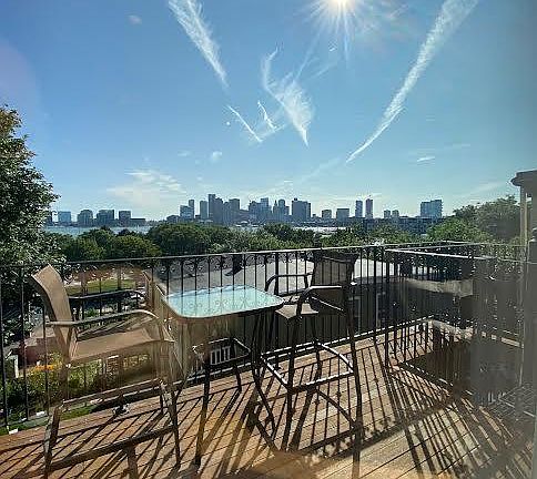 Amazing harbor & city skyline views! Private Deck w glass sliding doors. Loft-like living room w wall of glass. Open concept granite/stainless kitchen. Marble Bath. In-unit front load washer & dryer. Built-in AC. Dishwasher/Disposal/Microwave/Gas Stove. Spacious penthouse 1 bed plus study/guest room. This is by far the nicest unit in the heart of Jeffries point on Webster St. in this price point. Steps to Piers Park & the waterfront. Quick walk to the T. Rent includes cold water/sewer. Tenant pays gas & electricity. 1st, security & fee. Available 10/1...possibly sooner. No smoking. No pets.